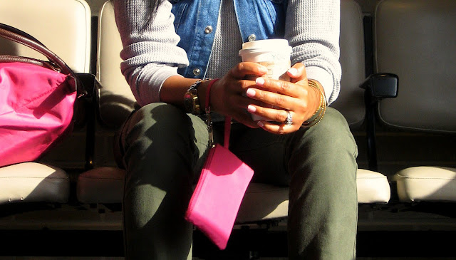 You might notice that I'm wearing the same cargo pants and jean vest that I had on in my last post and OOTD. I subbed out the black Jessica Simpson heels for leopard print flats, which I actually LOVE even though flats drive me crazy. Instead of the black tunic I'm wearing a gray thermal. The play on pattern and textures and print was fun.